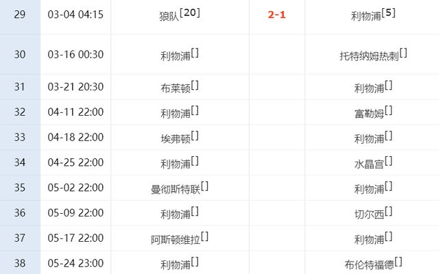 本輪比賽,利物浦做客狼隊,結(jié)果他們竟然1-2慘遭絕殺。在剩下的比賽中,利物浦還要對陣埃弗頓、曼聯(lián)、切爾西、維拉和布倫特福德等排名前八的強(qiáng)隊。盡管利物浦如今位居第五,但是他們狀態(tài)起伏很大,再加上還要分心歐冠,誰都不敢保證利物浦能一直坐穩(wěn)這個位置。